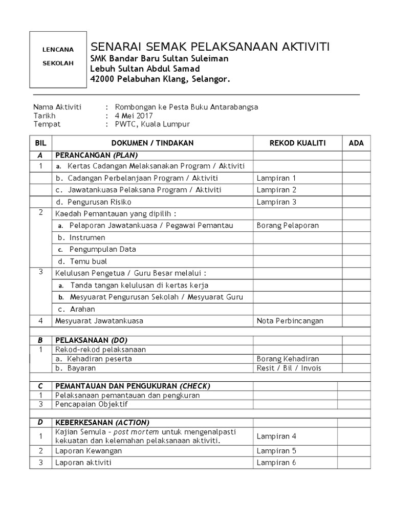 Senarai Semak Pelaksanaan Program Pdf