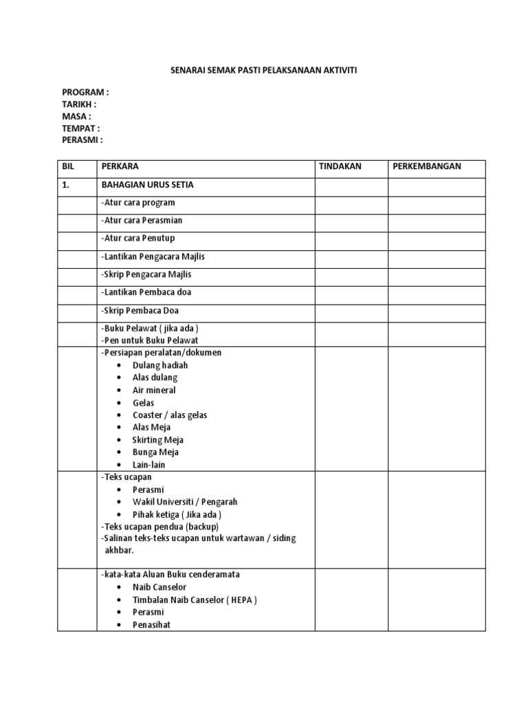 Doc Senarai Semak Untuk Penganjuran Majlis Dan Acara Rasmi Ana Yusof Academia Edu