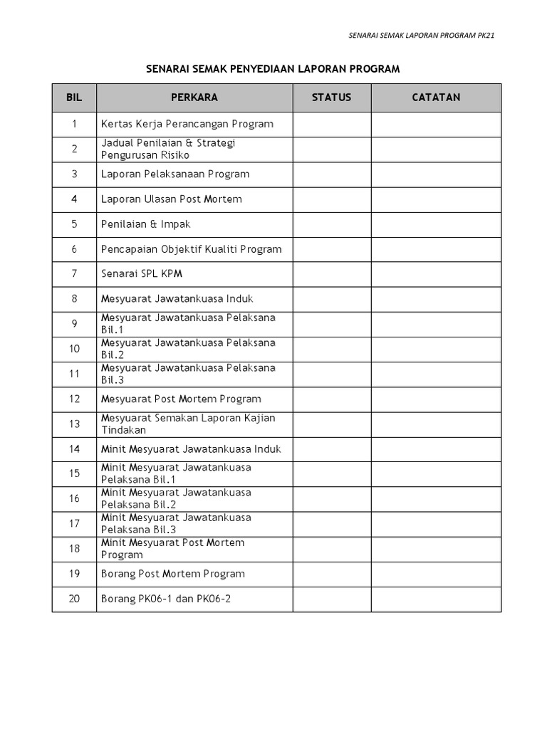 Senarai Semak Laporan Program Pdf